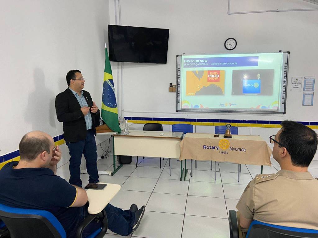 O Presidente Rodrigo Rosa fez uma apresentação das informações sobre o Rotary Internacional e também sobre o Distrito 4740, destacando as ações de combate a Pólio e os projetos locais do Rotary Lages Alvorada.