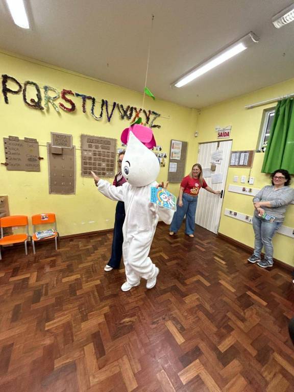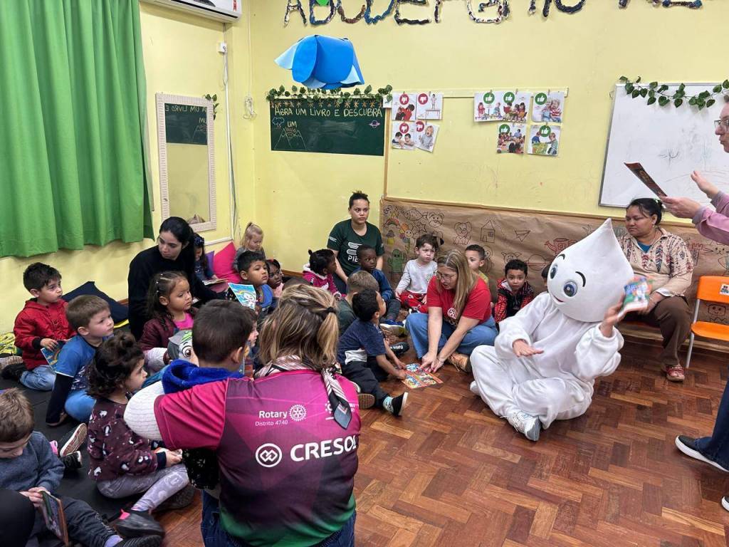 A Gotinha Velente está circulando em escolas de Chapecó para lembrar a importância da vacinação. Companheiros acomanham e fazem a anerega do Gibi e contam a história de maneira a inserir a persomagem no meio. Assim, a vacinação se torna informção para crianças e pais. O clube agradece a todas as escolas que acolheram o tema e abriram as portas para falar sobre a Polio e sobre o Rotary, como Colégio Peixinho Feliz, CEIM Ilda Maria Dall Piva e CEIM Ciranda da Criança.